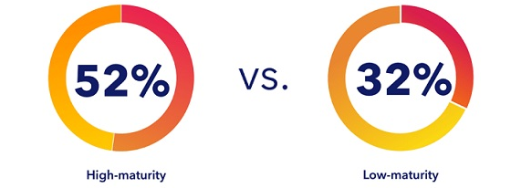 Across industries* 52% of enterprises with high-maturity EX strategies report double-digit revenue growth YoY compared to only 32% of low-maturity firms.